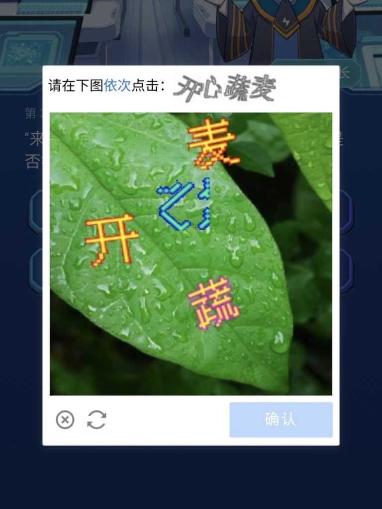 右にスライドして指定した要素が出てきた瞬間に手を離すもので、中国語を理解していないとほぼ不可能…