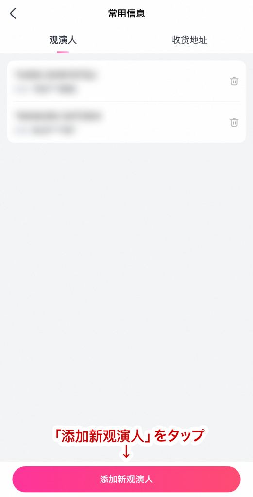 - 「添加新观演人」をタップ