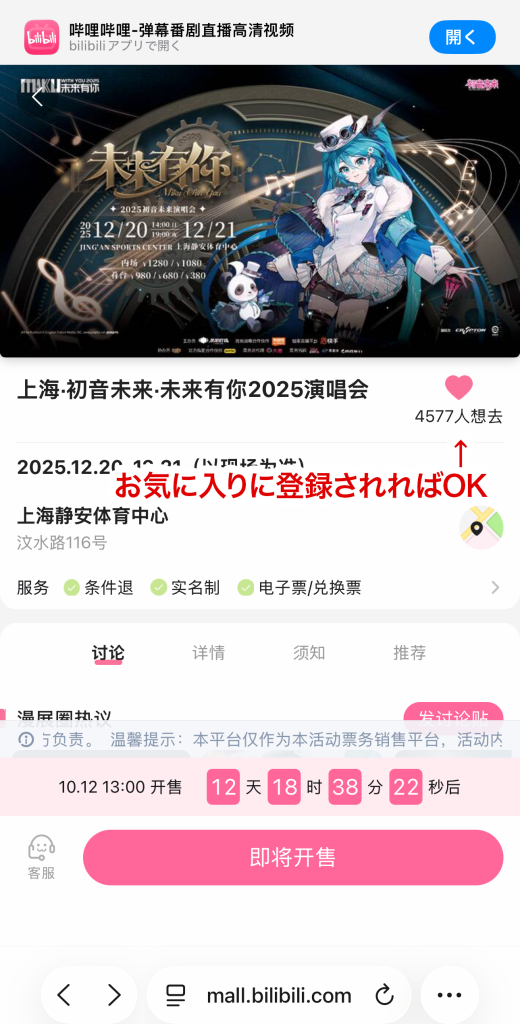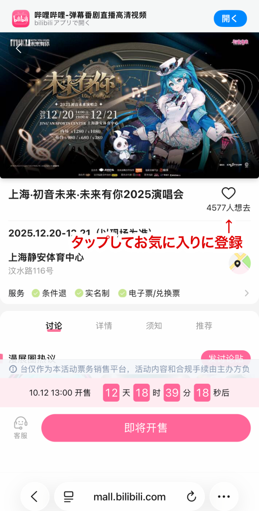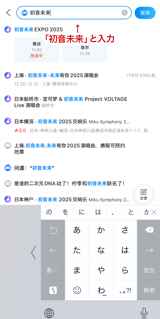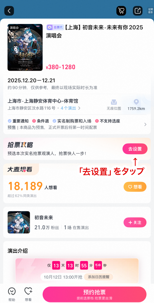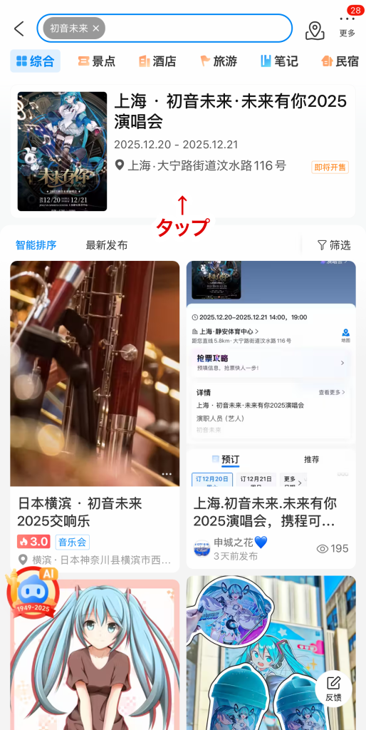 - 「上海・初音未来・未来有你2025演唱会」をタップ