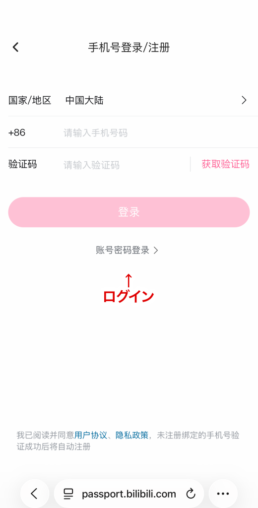 アプリの会員登録には中国の電話番号での認証が必要です。