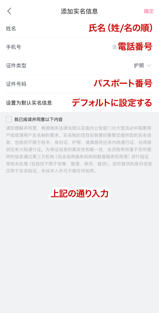 - 「添加实名信息」をタップ